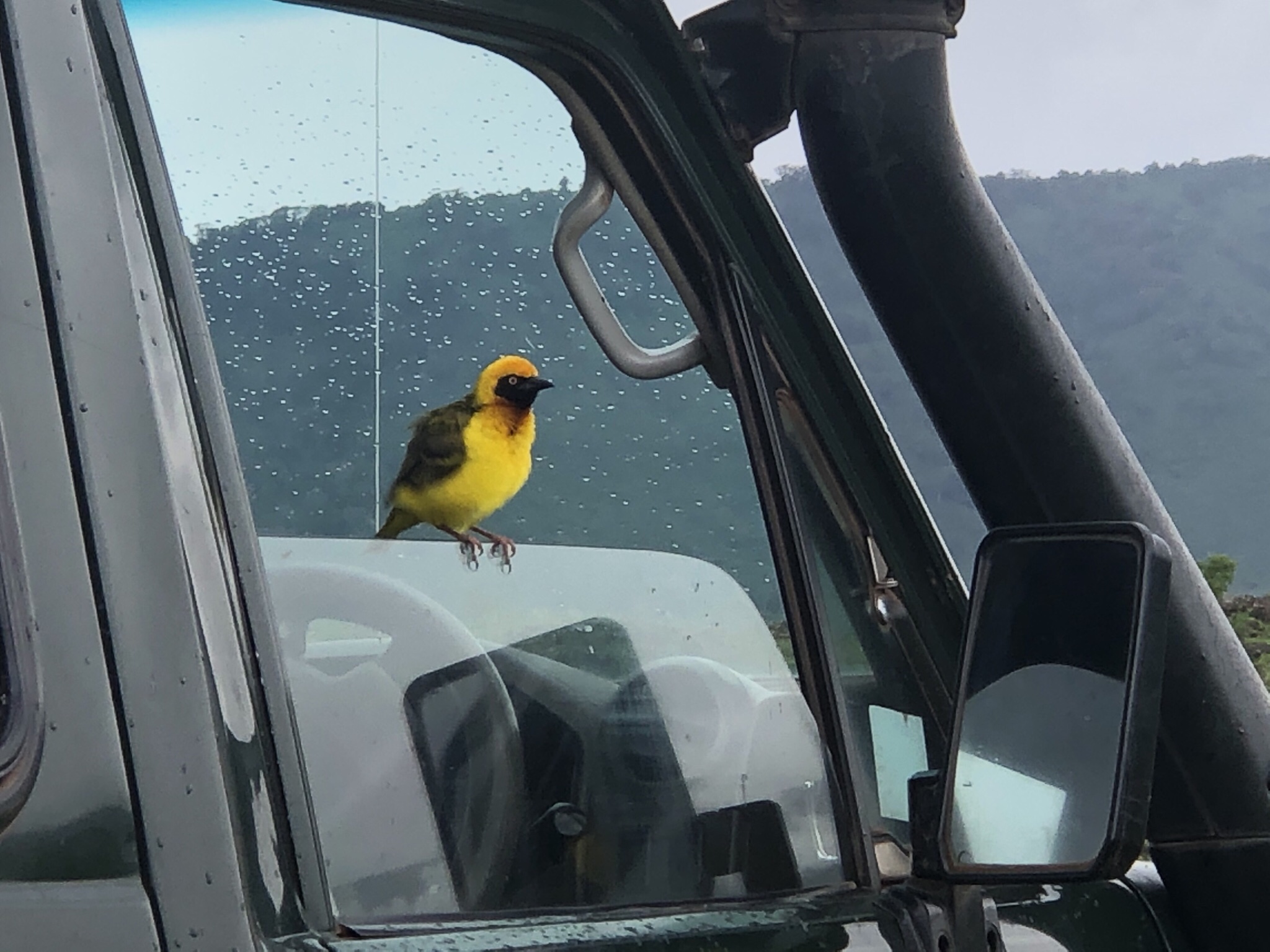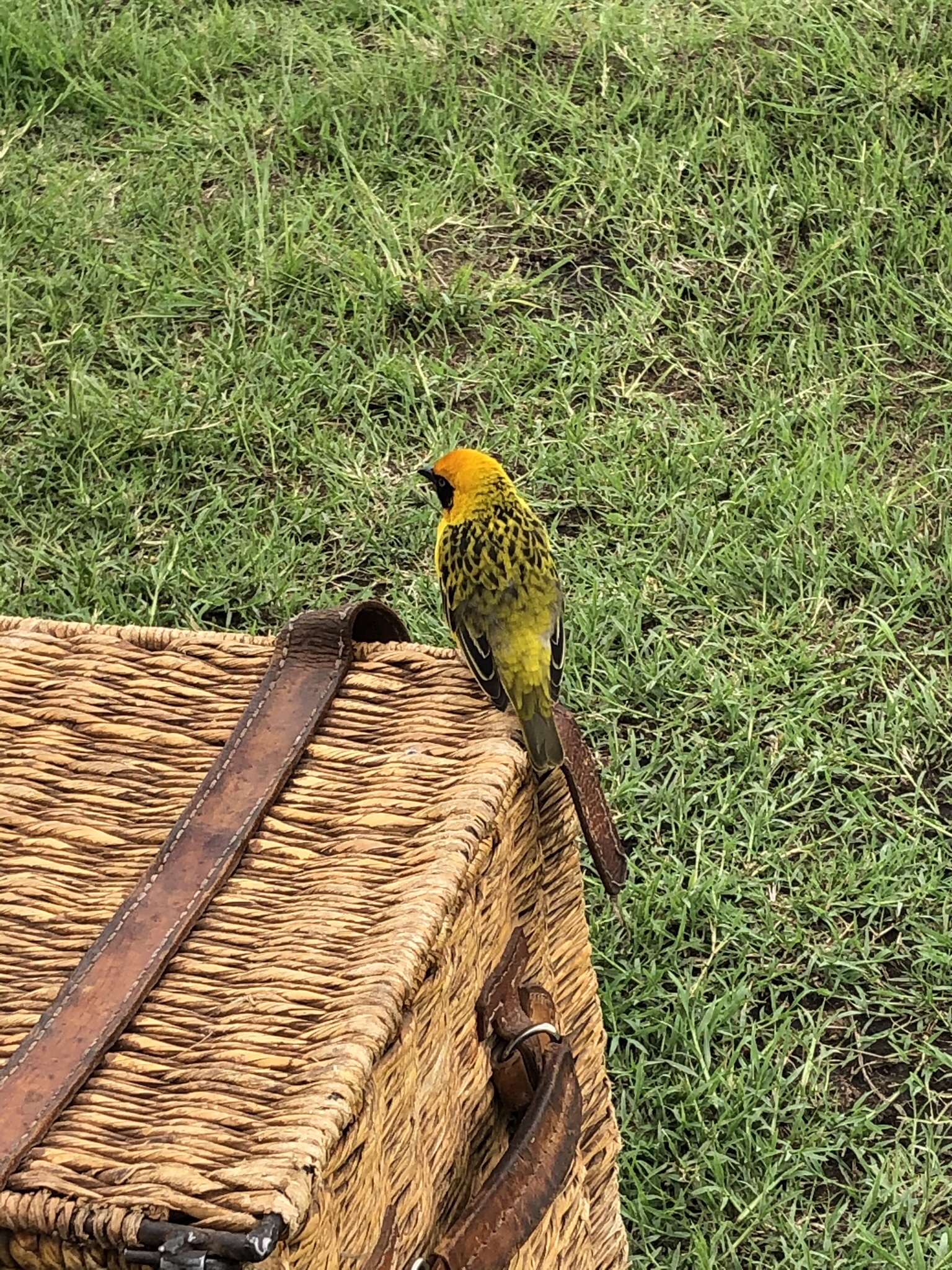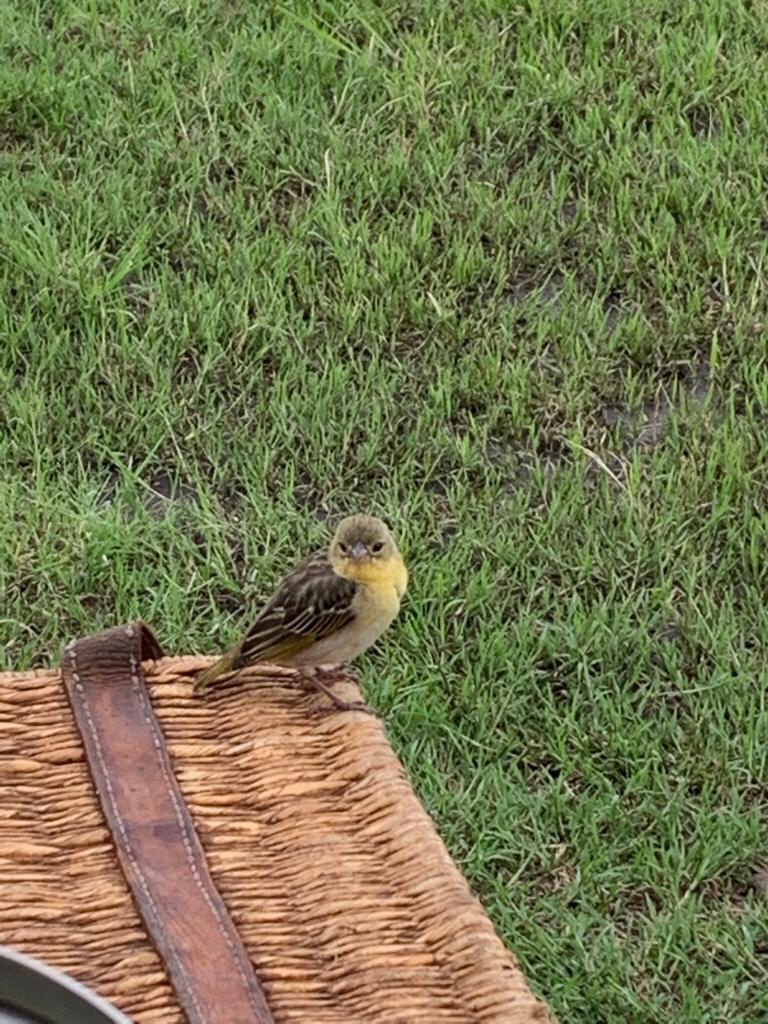 As we sat down for lunch , we were bothered not by hippos but by some pesky weavers ! Lesser Masked weavers , Baglafect weavers , Spekes weavers and a couple of superb starlings squabbled for the food scraps . They were clever enough to get into the Land Rover and search for food droppings . Talk about adaptation to the environment !