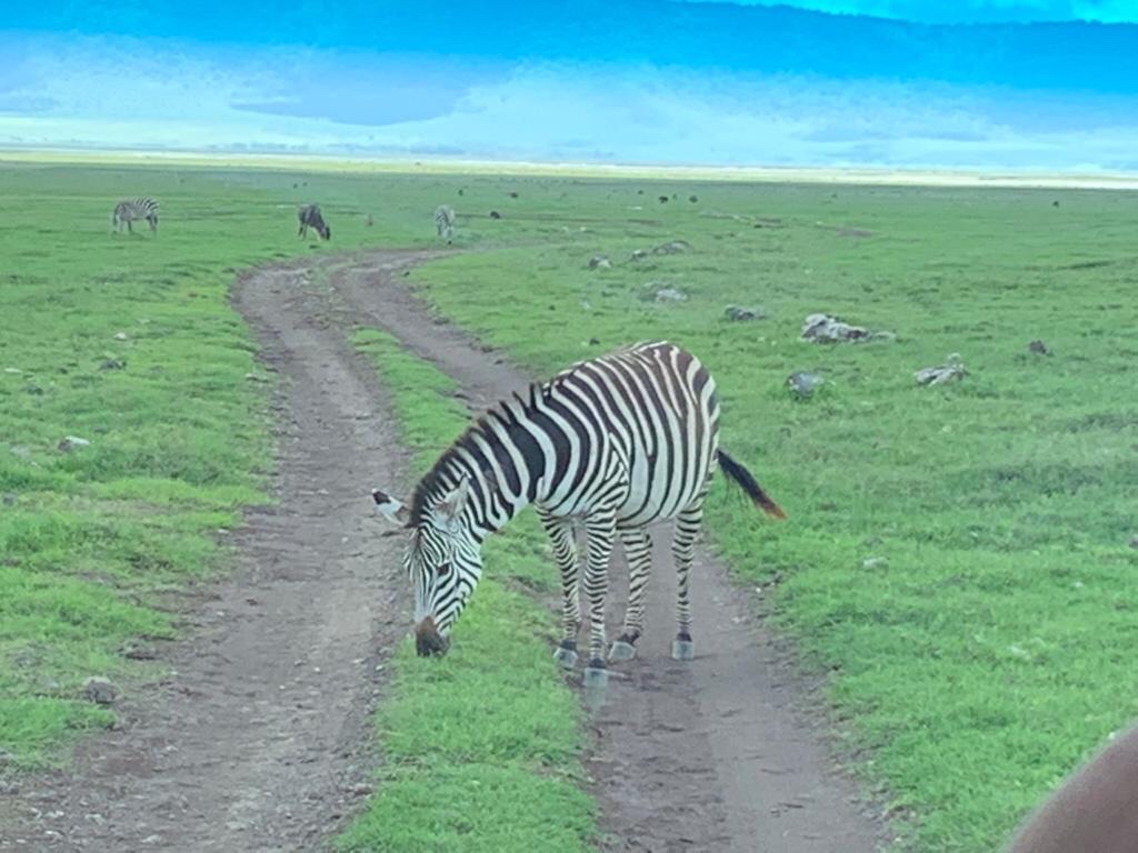This time we decided to turn left . The crater floor rolled into the distance , bathed in morning sunlight , full of hidden surprises . There was prospect of rain later in the day . The crater is known for its volatile weather pattern. But for now the zebras , grants gazelles mixed with Tommies and the western bearded Wildebeeste ( which do not participate in the great migration , remaining confined to the crater ) grazed in the grass in peace . As long as the predators were visible , nobody seemed to mind !