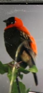 The colorful red fire finches and Bishops were out in numbers . Along the shore of the lake and other scrub areas , colorful weavers and barbets had made their nests .