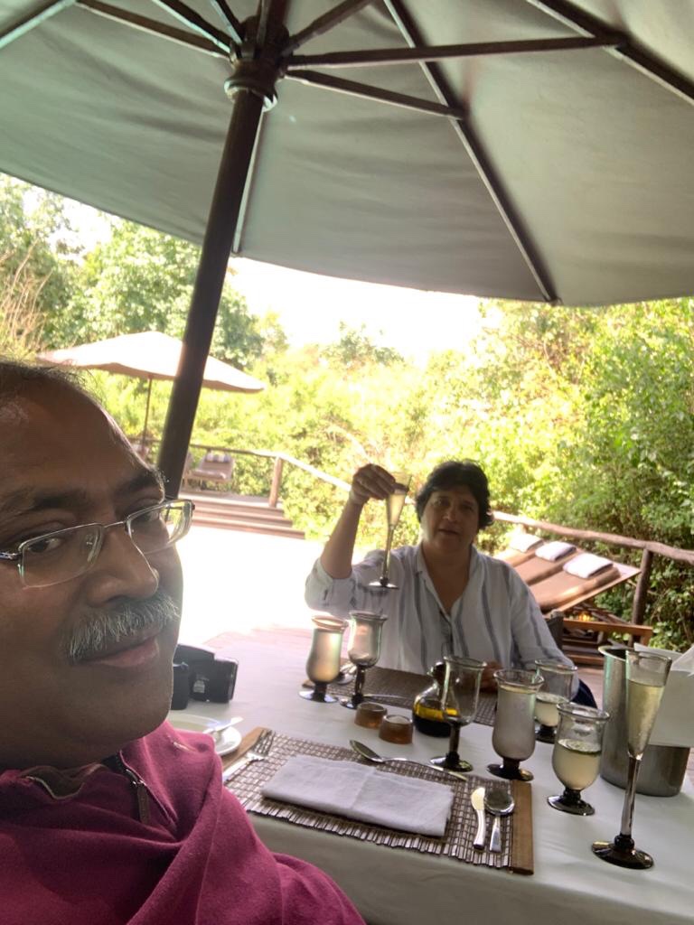 It was a quiet and beautiful afternoon . The late afternoon sun was not too hit as a balmy zephyr filtered through the trees carrying myriad scents from flowering trees around us . We slowly sipped champagne and thought that life was worth the while living . Sitting besides the pool , several vervet monkees , made an appearance to see what were their cousins upto by the poolside .