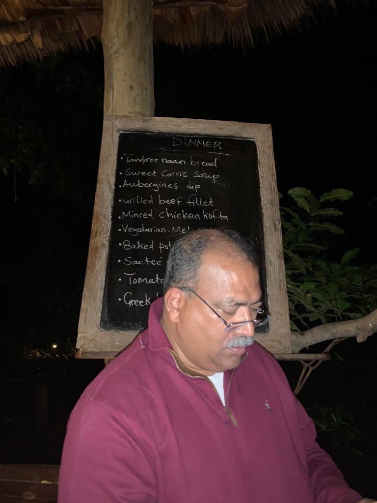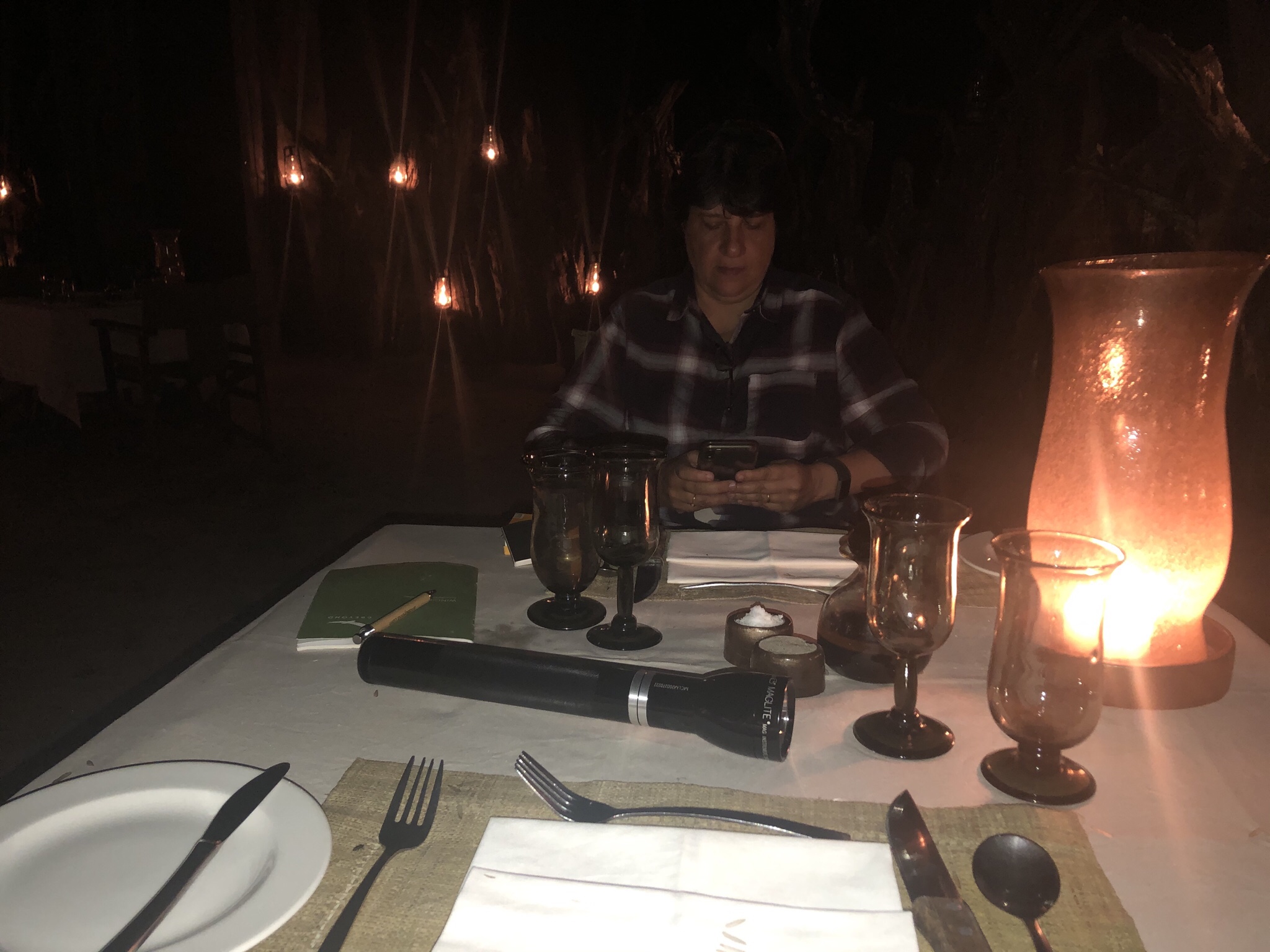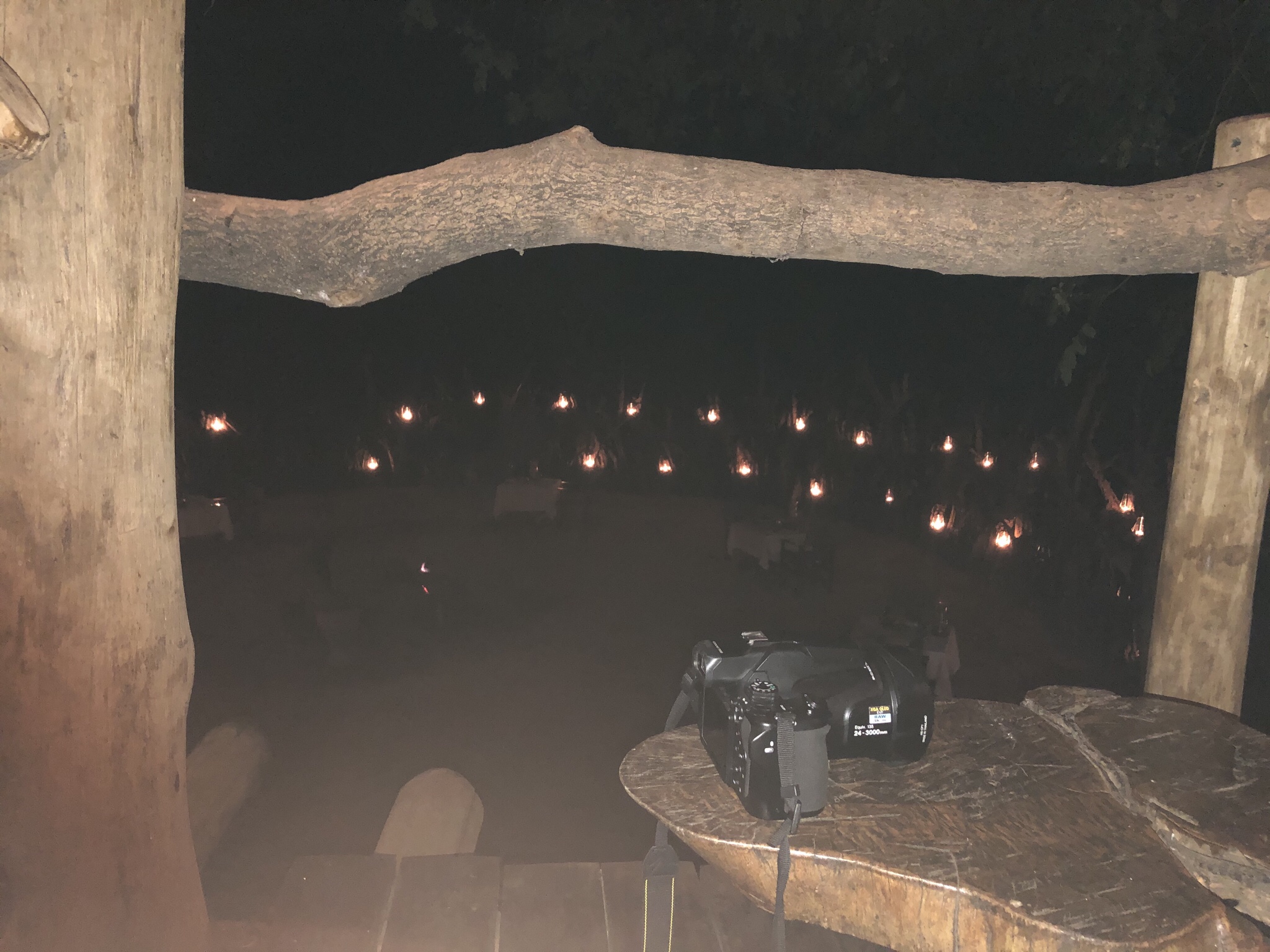Having finished an excellent dinner , we made ready to go on our Night Safari , armed with our cameras appropriately set.