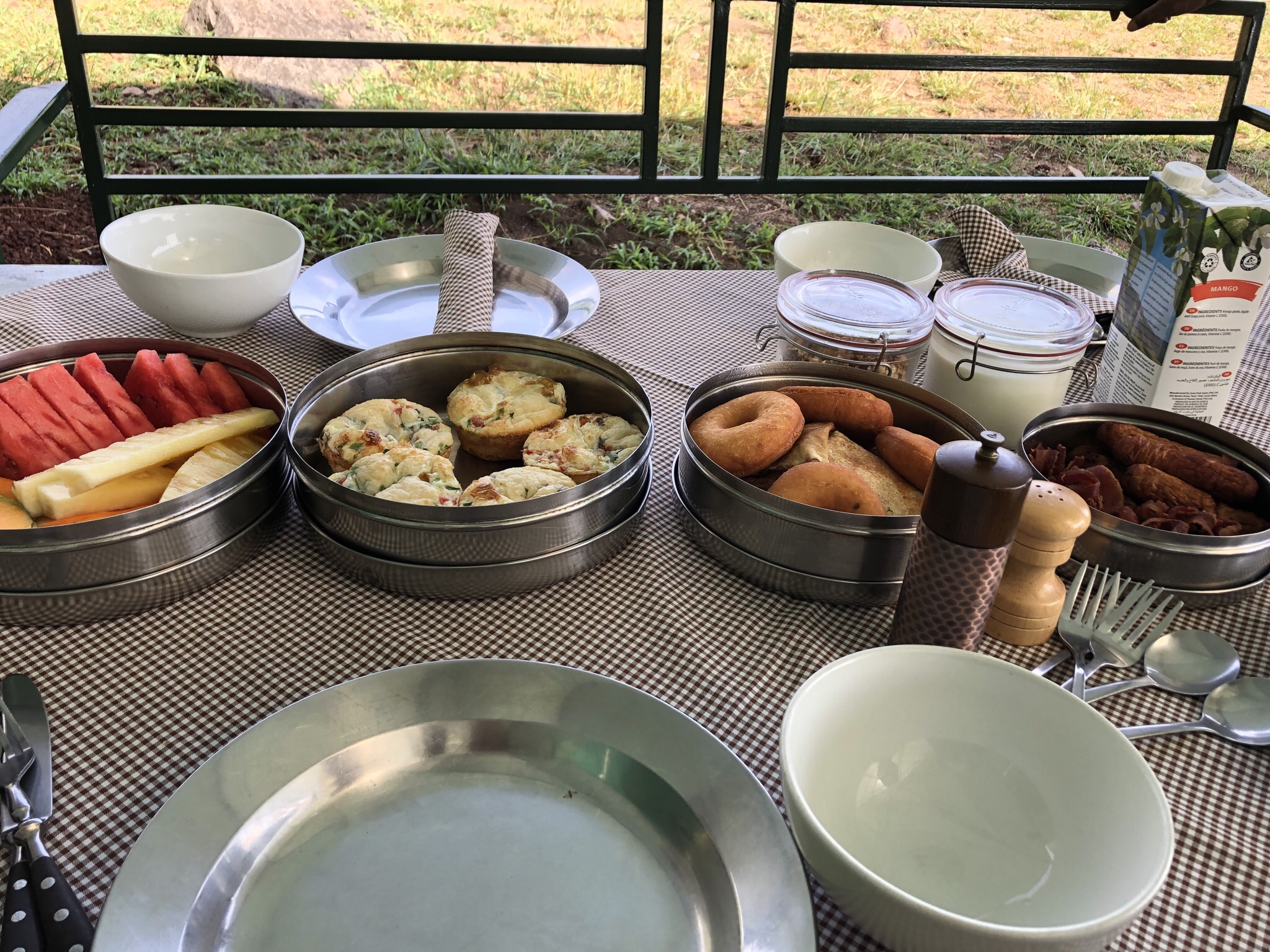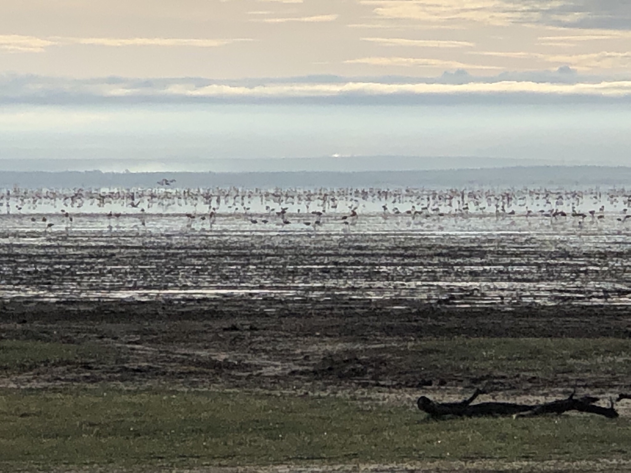 With some reluctance , we left the flamingoes to sit down to have a luxurious breakfast .. pies and muffins and fresh fruits all washed down with the drink of choice for such occasions on Safari .. coffee with Amarula !