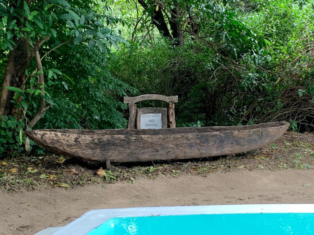 As we descended from the vehicle , Abdullah said that we had surprise waiting us . He led us way to the poolside after we had washed up and escorted us to rear of the Boma.