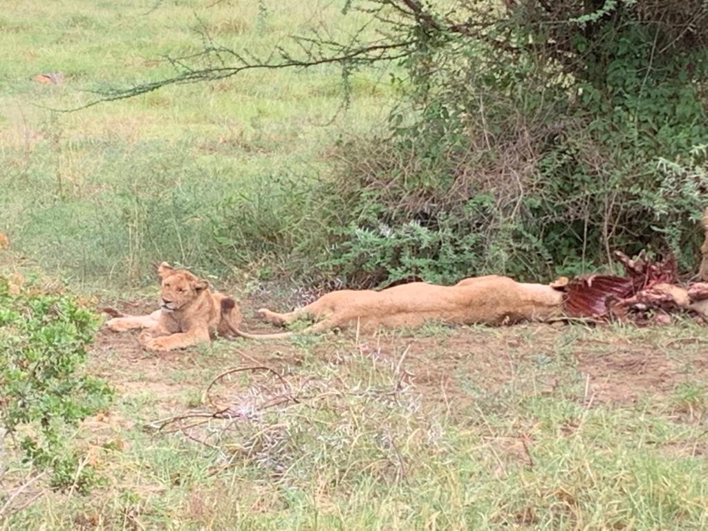 Likely it was the lionesses who must have made the kill. The two male lions would have arrived later and chased the others away as they settled down to dinner .
