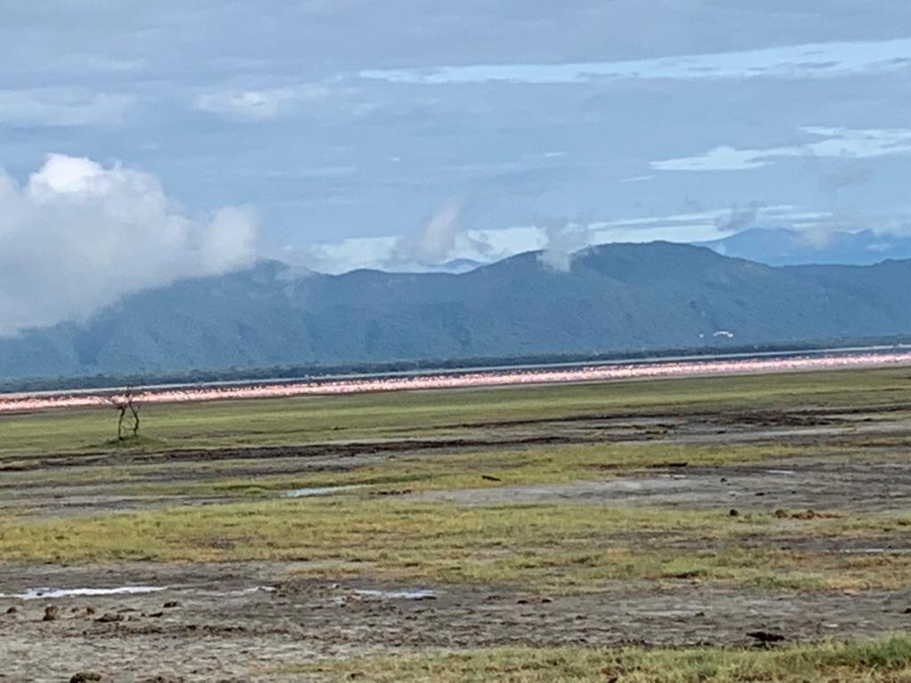 Below us Lake Manyara shimmered in the distance with a pink hue of flamingoes !