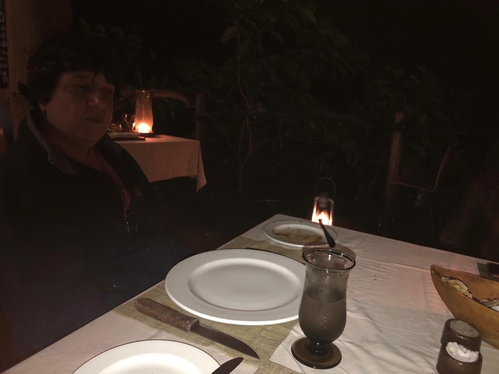 We descended from the bar area to the dining area , in order to have a candlelit dinner of excellent hot bell pepper soup, naan bread , beef fillet and tandoori chicken accompanied by salad and grains and some excellent beetroot feta and sunflower seeds salad , washed down with another Gin and tonic and finally a nice dessert .