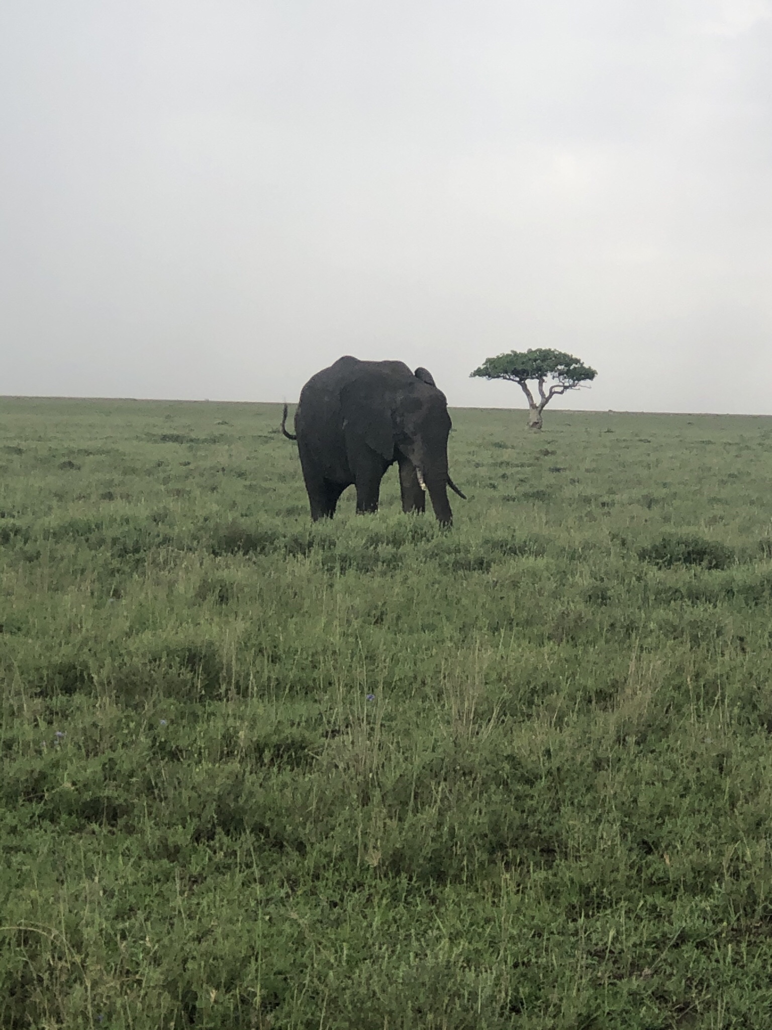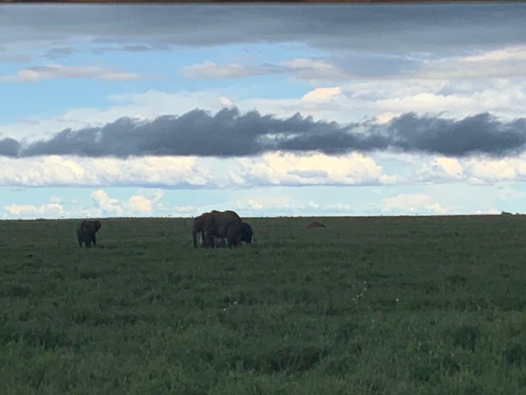 We left the lions to their wanderings and drove across the unending Savannah and spotted a herd of elephants . We watched the antics of couple of baby elephants in the grass while the matriarchs of the family led the herd to greener pastures to graze .