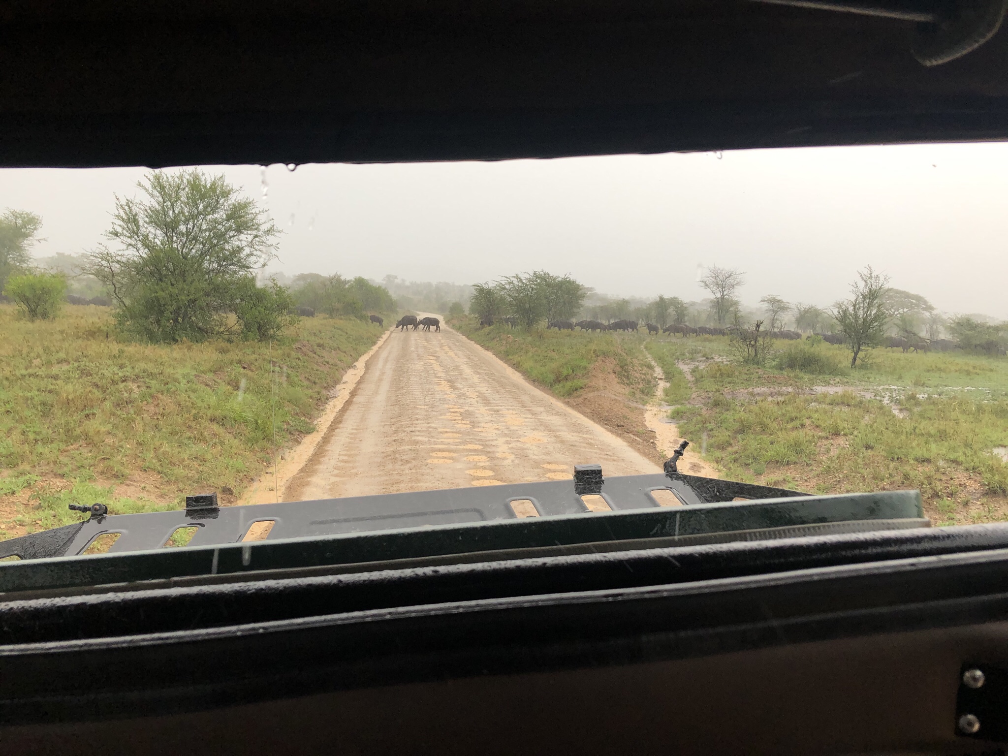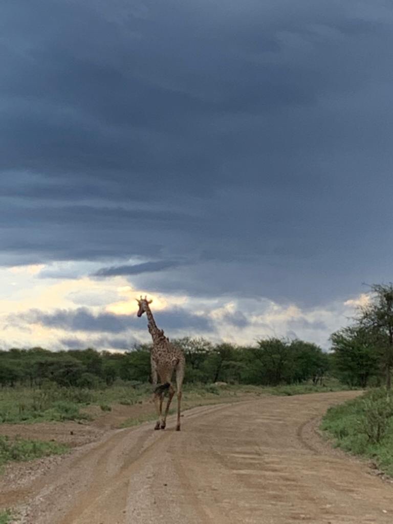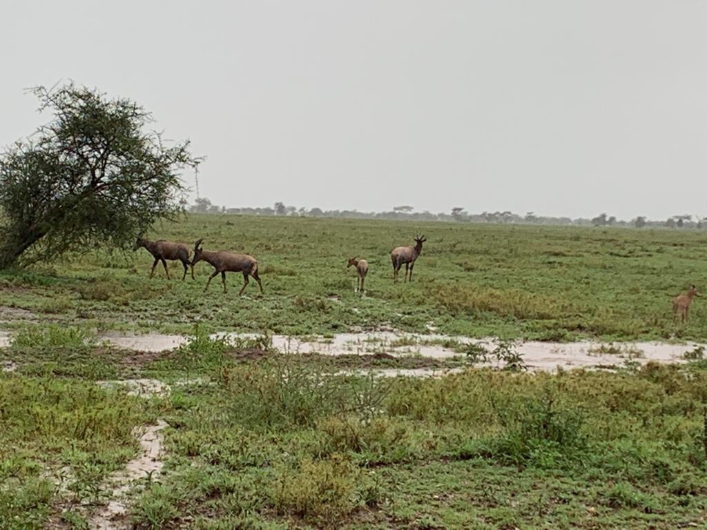 The rain relented around four in the afternoon and we started on the way back to our camp after further sightings of giraffes , impalas , Hartebeeste and Topi’s .