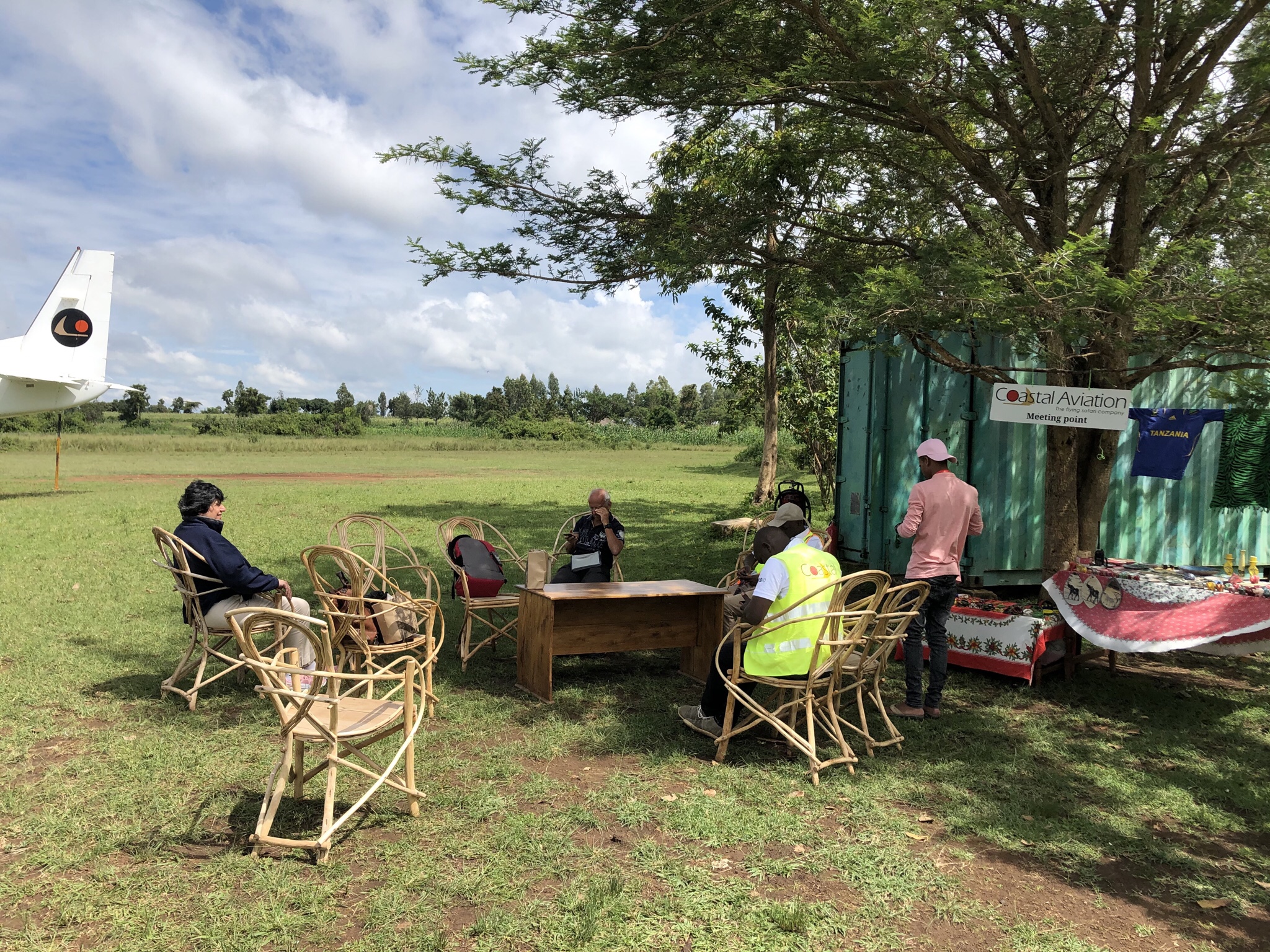 We flew into an airstrip , half paved with rubble , in the middle of nowhere in a town called Migongo near the Kenya Tanzania border. We were then escorted into a bus and our passports and yellow fever certificates checked and given forms duly to be filled out . We drive through the country side- farm lands , and then through the town of Migongo which was full of small repair shops and booze shops . Amongst the shops Indian owned ones , Bhagwanti stores ! At several places a Sunday market was happening . We then went to the town of Isanbaniya which was the border town with Tanzania . Got off the bus and got our passports exit stamped at. Passport checkpoint and then were driven across the border crossing gate . There was heavy security at the gate and then once more into passport controls on the Tanzanian side . Our evisa were checked as well as a health check with our temperatures taken with a handheld device and our yellow fever certificates checked . Passport formalities was facilitated by a guy called Tommy who was helpful .