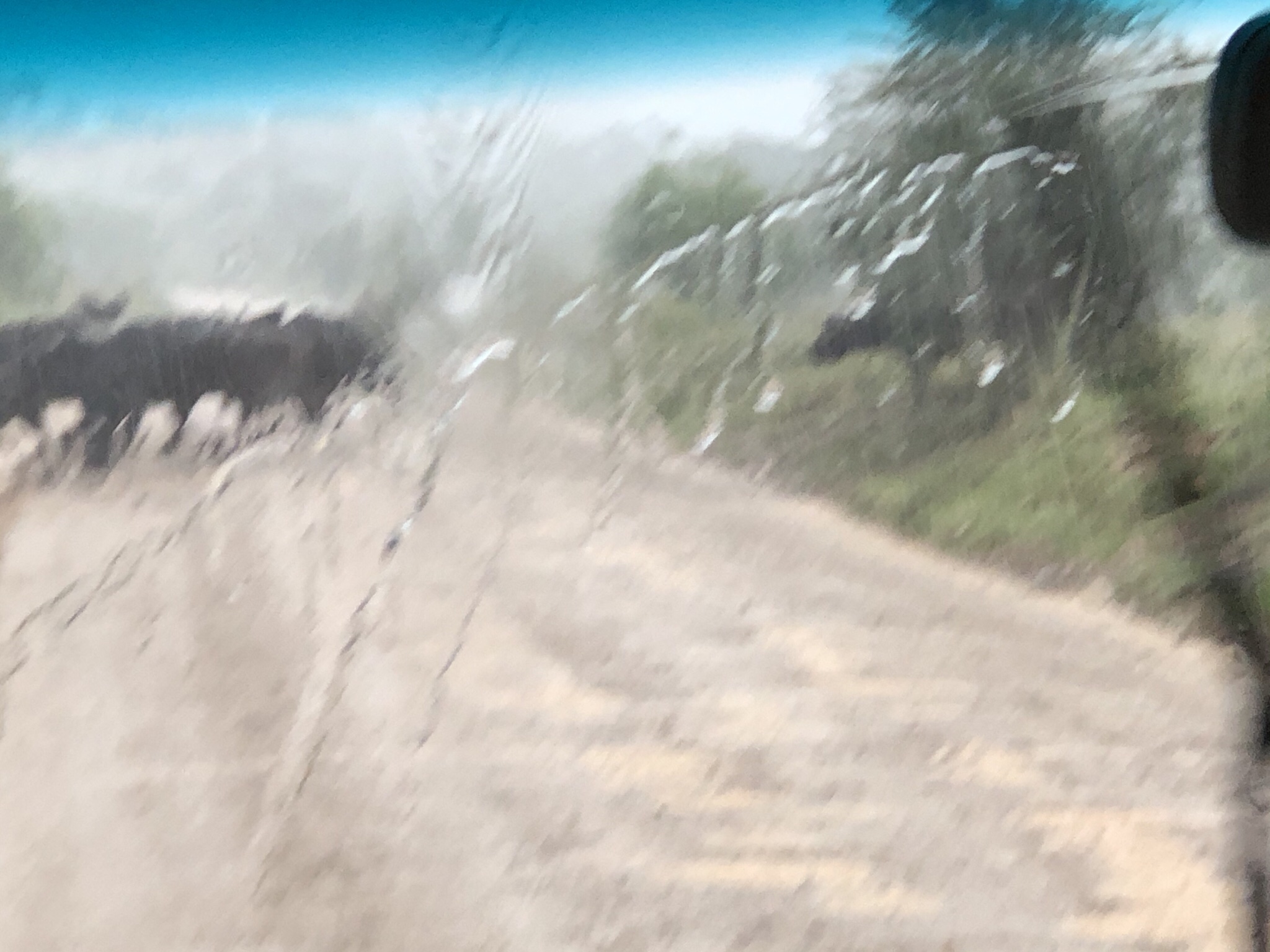 No sooner had we seen the buffaloes , we heard even more commotion and suddenly across the road the Great Migration !