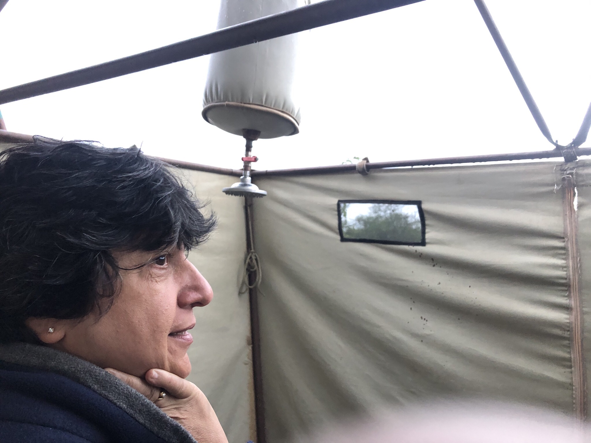 Dinner was an excellent bell pepper soup and beefsteaks accompanied by fresh salad and beans and bread all produced miraculously in a kitchen tent close by and announced proudly by the Chef !
