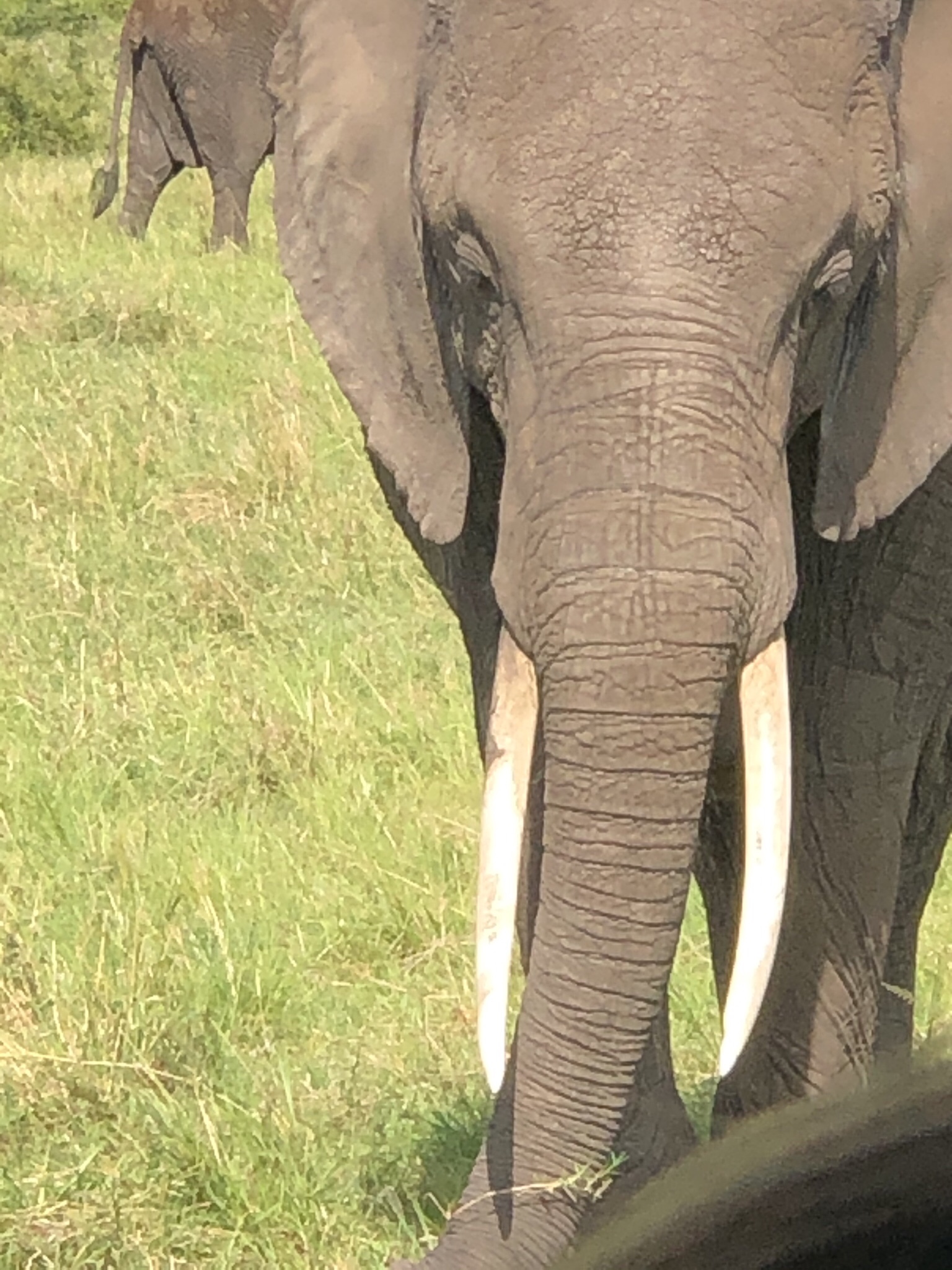 The elephants were all females led by a matriarch and babies . They looked majestic in the mid morning sun and were very close to our vehicle without seeming to threaten .